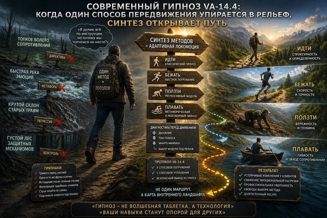 Человеческое сознание — многоуровневая система, и метод «Современный гипноз VA-14.4» предлагает целостный подход к терапии. Вместо случайных техник, специалист получает диагностико-терапевтический протокол, который позволяет адаптироваться к типу защитных механизмов клиента.